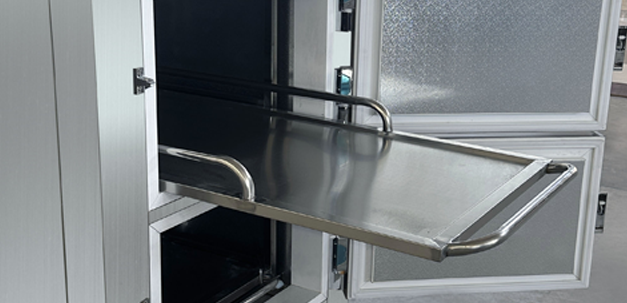 This morgue freezer has 6 built-in stretchers, all of which are independent. The stretchers can be pulled out and used separately & can be pushed back in after cleaning.