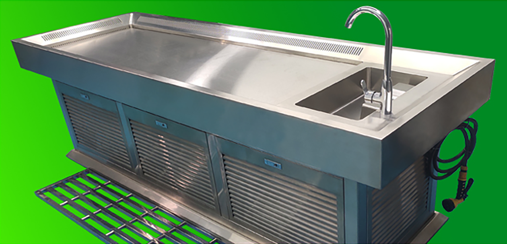 Specially designed drainage channels and perforated grids ensure quick and smooth discharge of fluids, keeping the work surface clean and safe.
