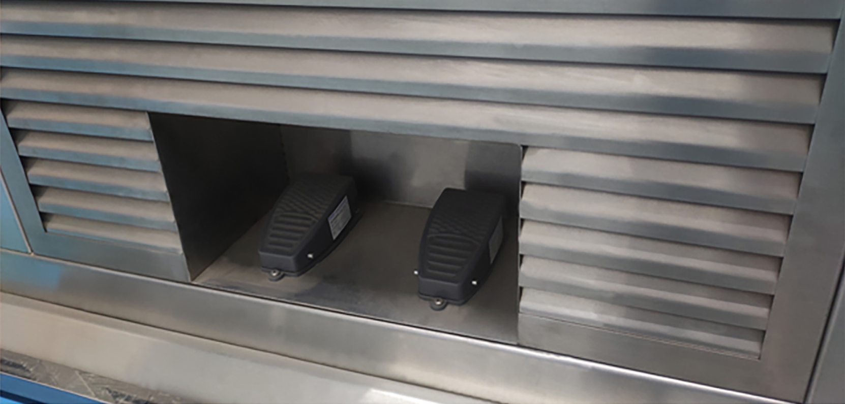 The dissection table foot pedal electric lift motor is located under the table (stainless steel fence plate cover). The power system servo foot pedal instantly starts the motor to lift the operating table & release the staff's hands.