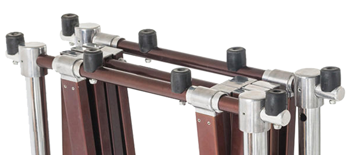 The church cart is equipped with four foldable locking latches on each side, enabling secure positioning (dimensions) when folding or unfolding the cart to prevent structural displacement and potential accidents.
