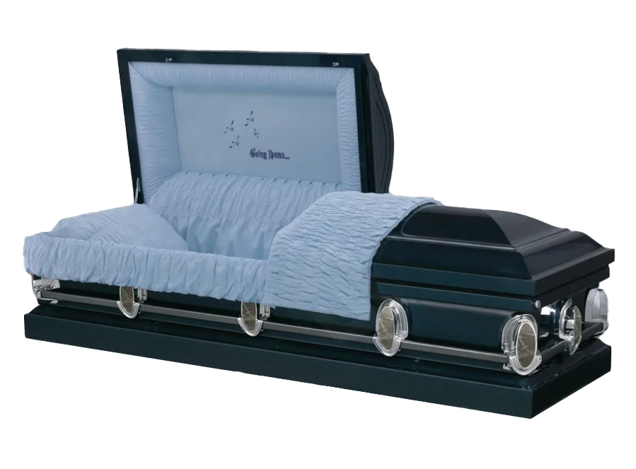 Premium Metal Coffin Color Glossy Finish with Lift Devices & Ivory Interior Professional Funeral Supplies